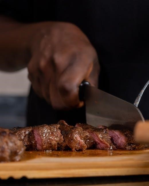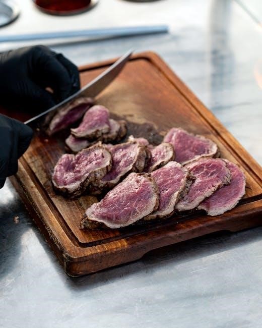 Visual aids within these PDFs demonstrate proper trimming techniques to remove excess silver skin‚ enhancing tenderness. Diagrams also highlight the importance of maintaining moisture during cooking‚ often suggesting liquid additions. Understanding grain direction‚ as shown in PDFs‚ is vital for achieving tender slices.
